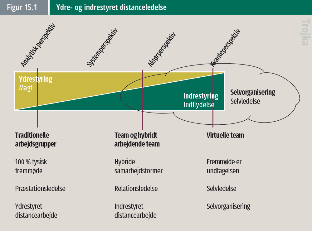 Teams og hybridt arbejdende teams er præget af Indrestyret distanceledelse, der får karakter af ledelse af selvledende medarbejdere.