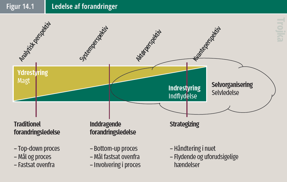 Den traditionelle forandringsledelse er ydrestyret, og her sætter ledelsen dagsordenen og styrer processen top-down.